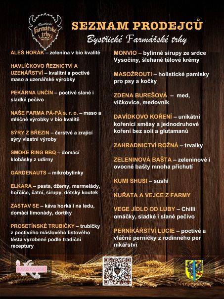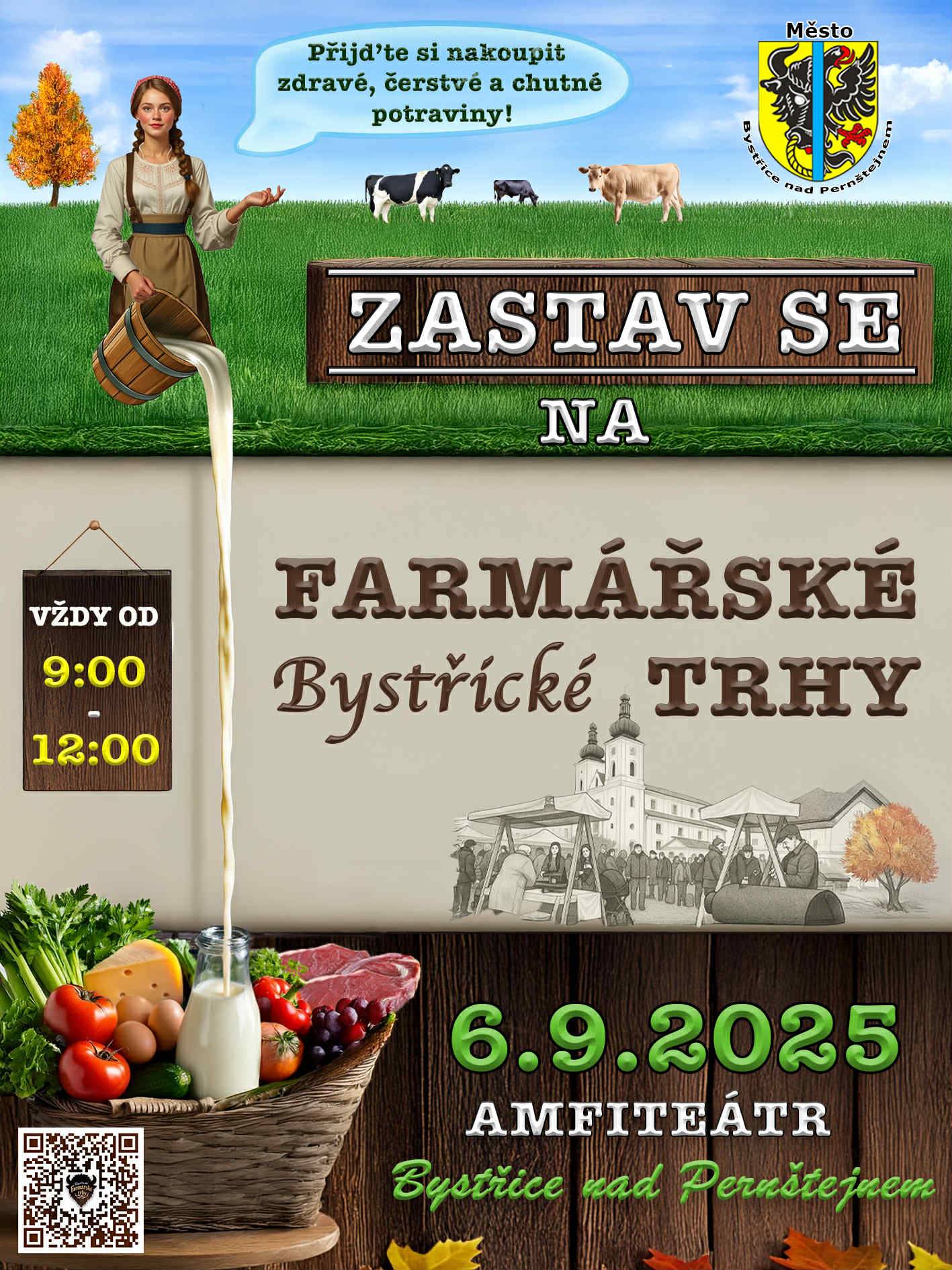 Zveme vás na další fármářské trhy, které se konají v sobotu 6. září od 9.00 hod. na tradičním místě v amfiteátru na náměstí. Těšíme se na Vás!