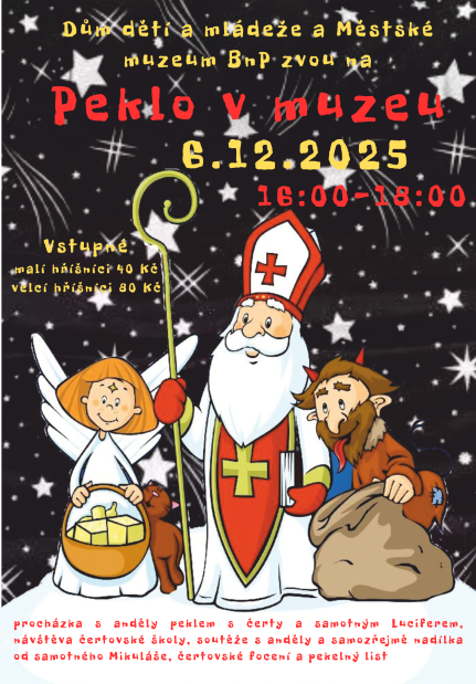 Peklo v muzeu - Vydejte se na procházku s anděly peklem s čerty a samotným Luciferem. Navštívíte čertovskou školu, s anděly si zasoutěžíte a samozřejmě na vás bude čekat nadílka od samotného Mikuláše.