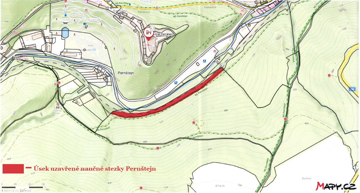 Uzavření části naučné stezky Pernštejn bude trvat od 29.9.2025 do 23.10.2025, tj. po dobu trvání výluky železniční dopravy Bystřice nad Pernštejnem-Tišnov. Důvodem uzavření stezky je možné ohrožení bezpečnosti návštěvníků lesa, na nichž bude probíhat druhá fáze těžby stromů. V minulém roce od 4.11.2024 do 8.11.2024 proběhla první fáze těžby. V letošním roce proběhne druhá fáze těžby stromů v blízkém okolí železniční tratě a naučné stezky Pernštejn. V místě plánované těžby se budou odstraňovat stromy vykazující velmi špatný zdravotní s hnilobnými procesy a proschlými korunami a sterilní souše, u nichž hrozí vysoká pravděpodobnost pádu větví nebo vyvrácení celých stromů a možné ohrožení bezpečnosti Z důvodu těžby a bezpečnosti bude část trasy naučné stezky Pernštejn po celou dobu těžebních prací pro veřejnost a návštěvníky uzavřena. Na dočasné uzavření budou upozorňovat informační tabule a páska. Informace bude také zaznačena na portále mapy.cz. Za Lesy České republiky, s.p. žádáme návštěvníky, aby z důvodu bezpečnosti nevstupovali do míst plánované těžby a dbali své osobní bezpečnosti.
